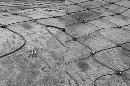 Завдяки ромбічній формі комірок канатні сітки піддаються невеликому розтягуванню вздовж кромок. Це знижує вимоги до точності встановлення несучих конструкцій та суттєво полегшує монтаж сіток.